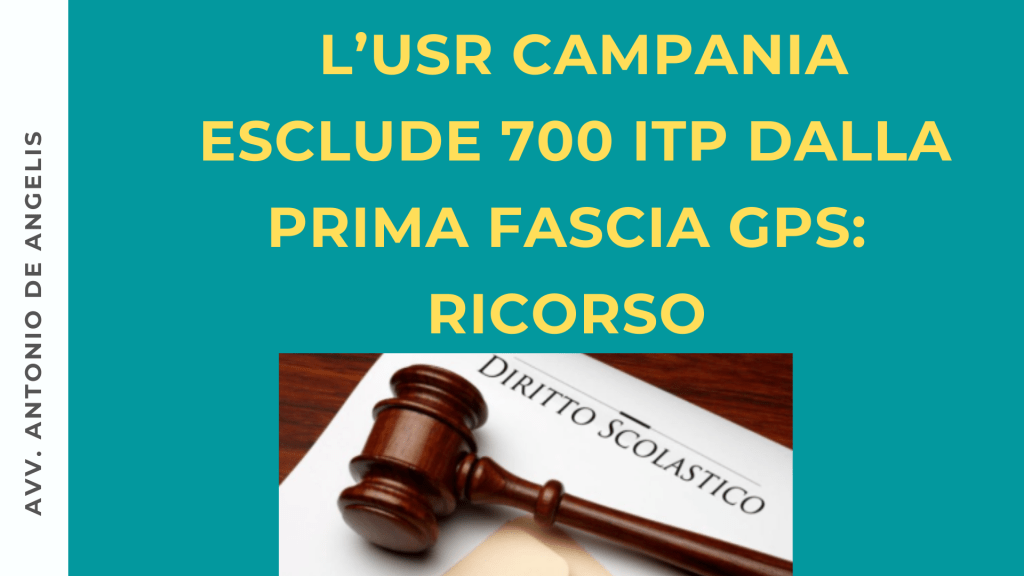 Lo studio legale dell’Avvocato Antonio De Angelis, che da anni si batte per la tutela dei diritti degli insegnanti ITP, sta già lavorando ad un ricorso, con l’obiettivo di far dichiarare l’illegittimità del provvedimento dell’USR Campania, con conseguente re-inserimento in prima fascia GPS di tutti i docenti interessati dalla nota pro. n. 1473 del 1 febbraio 2022.