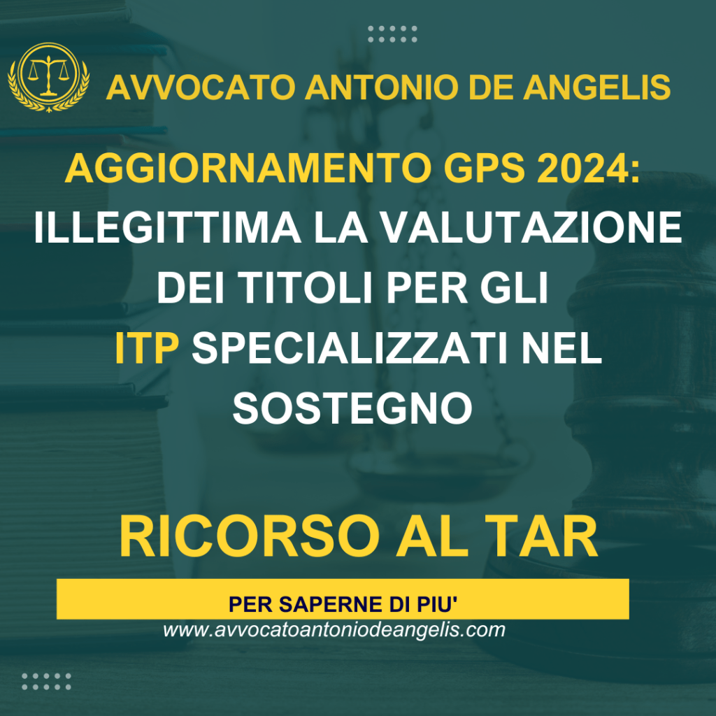 Per tale ragione lo Studio Legale dell’Avv. Antonio De Angelis sta predisponendo un ricorso al TAR, allo scopo di eliminare questa disparità di trattamento e vedere riconosciuto ai docenti ITP il medesimo punteggio aggiuntivo riconosciuto ai docenti delle classi di concorso della Tabella A.