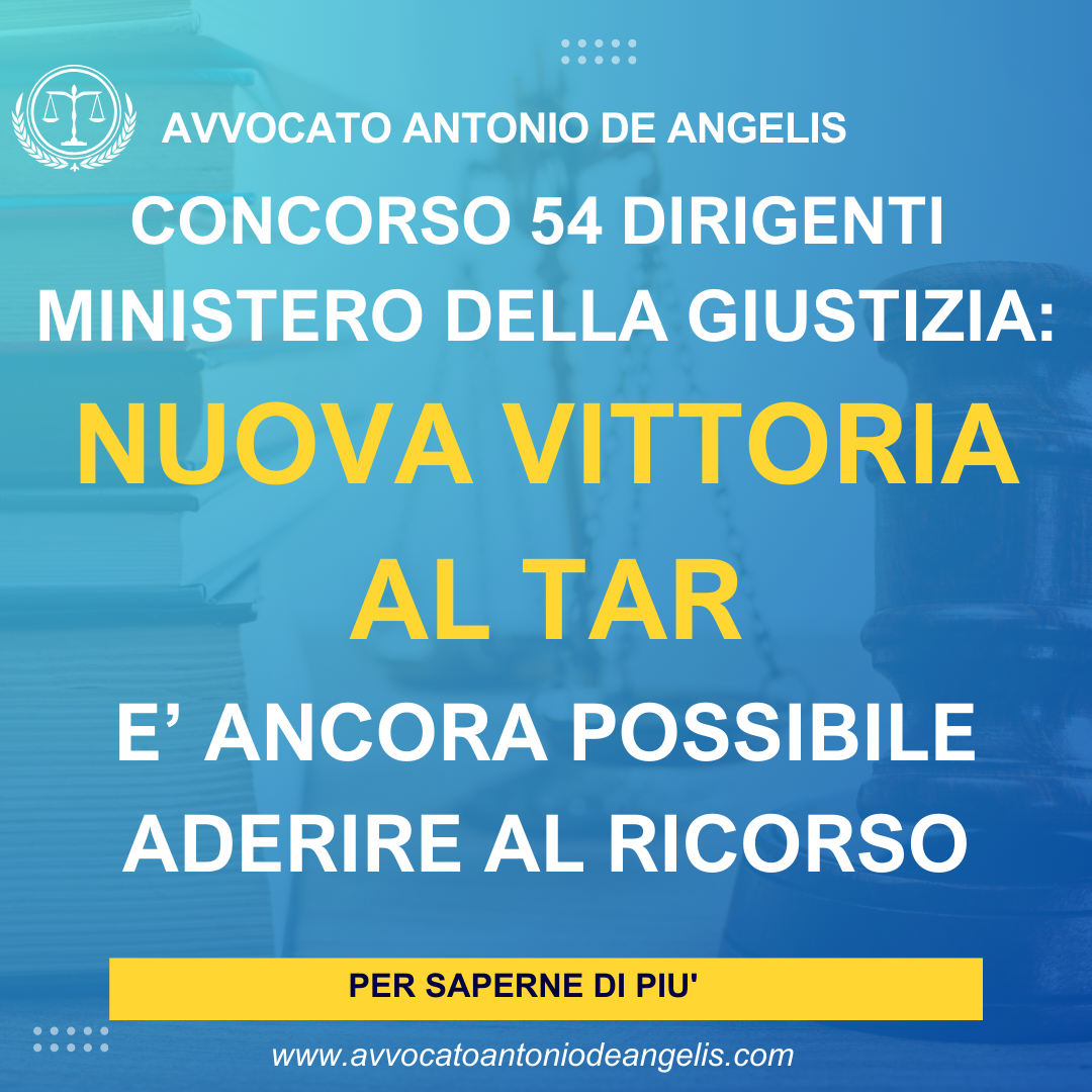 Nuova importante vittoria per lo studio legale dell’Avv. Antonio De Angelis nel ricorso avverso la mancata ammissione alle prove scritte del concorso per 54 Dirigenti del Ministero della Giustizia, previste per il 20/21 maggio 2025.